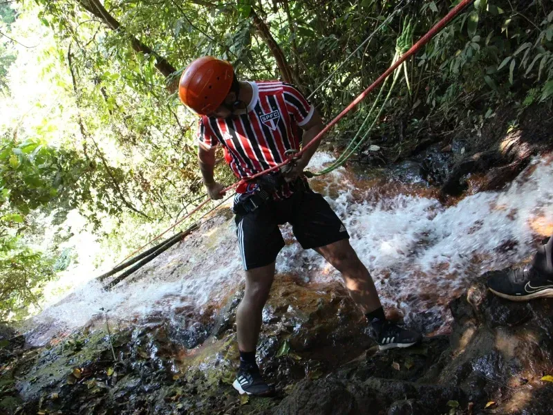 A aventura mais radical do Viva Brotas. Você salta de 60 metros de altura, direto no vazio, a partir de um penhasco ao lado da cachoeira. Um equipamento importado especialmente para essa experiência garante total segurança — e você garante a lembrança de um dos momentos mais intensos da sua vida. A sensação é indescritível: é como pausar o mundo por alguns segundos e sentir sua coragem assumir o comando.